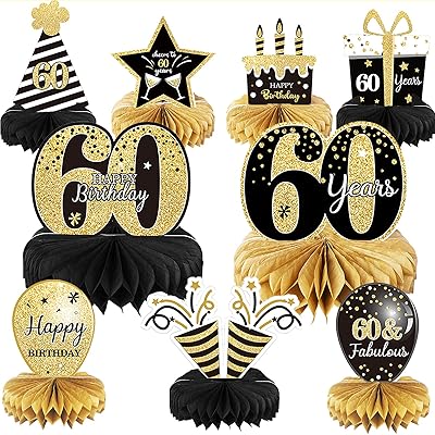 Cake toppers signs tabletop signs seating charts bunting flags candles mason jars plates napkins table card holders. 8 pieces 60th birthday honeycomb table centerpieces happy 60th birthday decorations cheers to 60 years table toppers for sixty years birthday party favors. If you're treating someone to a special meal, either surprise them with somewhere they've never been to before or book a table at their favourite local restaurant. Because the small details make this party a very special one. 60th birthday printable sign pack, 60th birthday digital posters, cheers to 60 years sign, 60th birthday decorations, instant download.